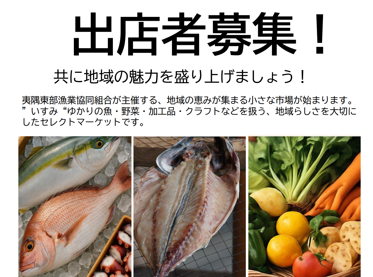 大原漁港 土曜マーケットへの出店者募集を開始しました。 | 株式会社 SOTOBO ISUMI 夷隅東部漁業協同組合が主催する「土曜マーケット」が2026年2月より始まります(予定)。 本マーケットは当社㈱SOTOBO ISUMIが運営するものであり、本日より出店者の募集を...